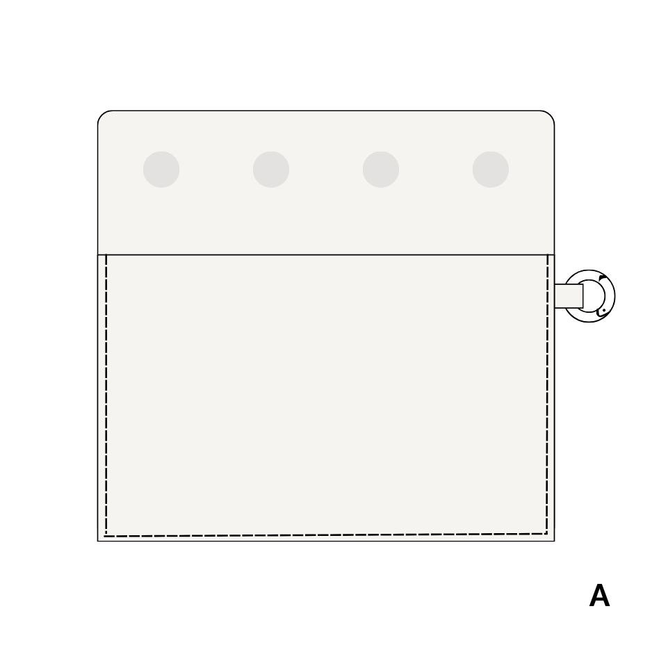 Choose up to four detachable pockets — two inside and two outside. Add them when you want extra organisation, or leave them off for a clean, minimalist look.