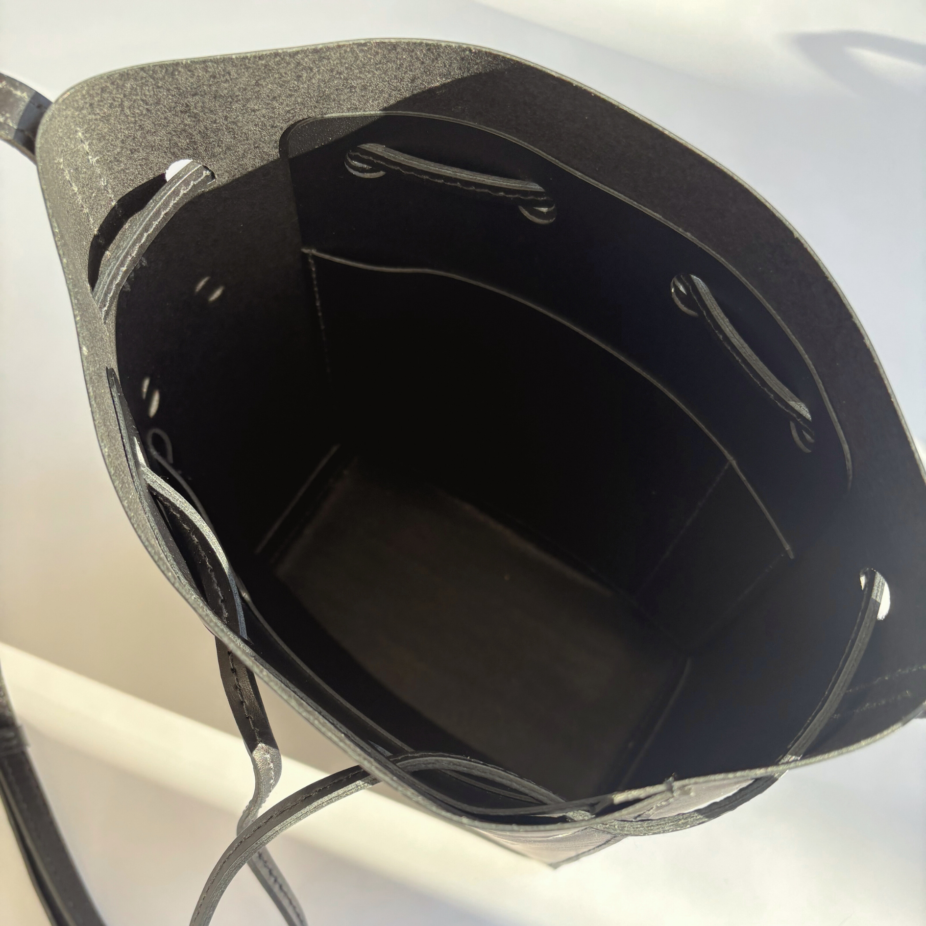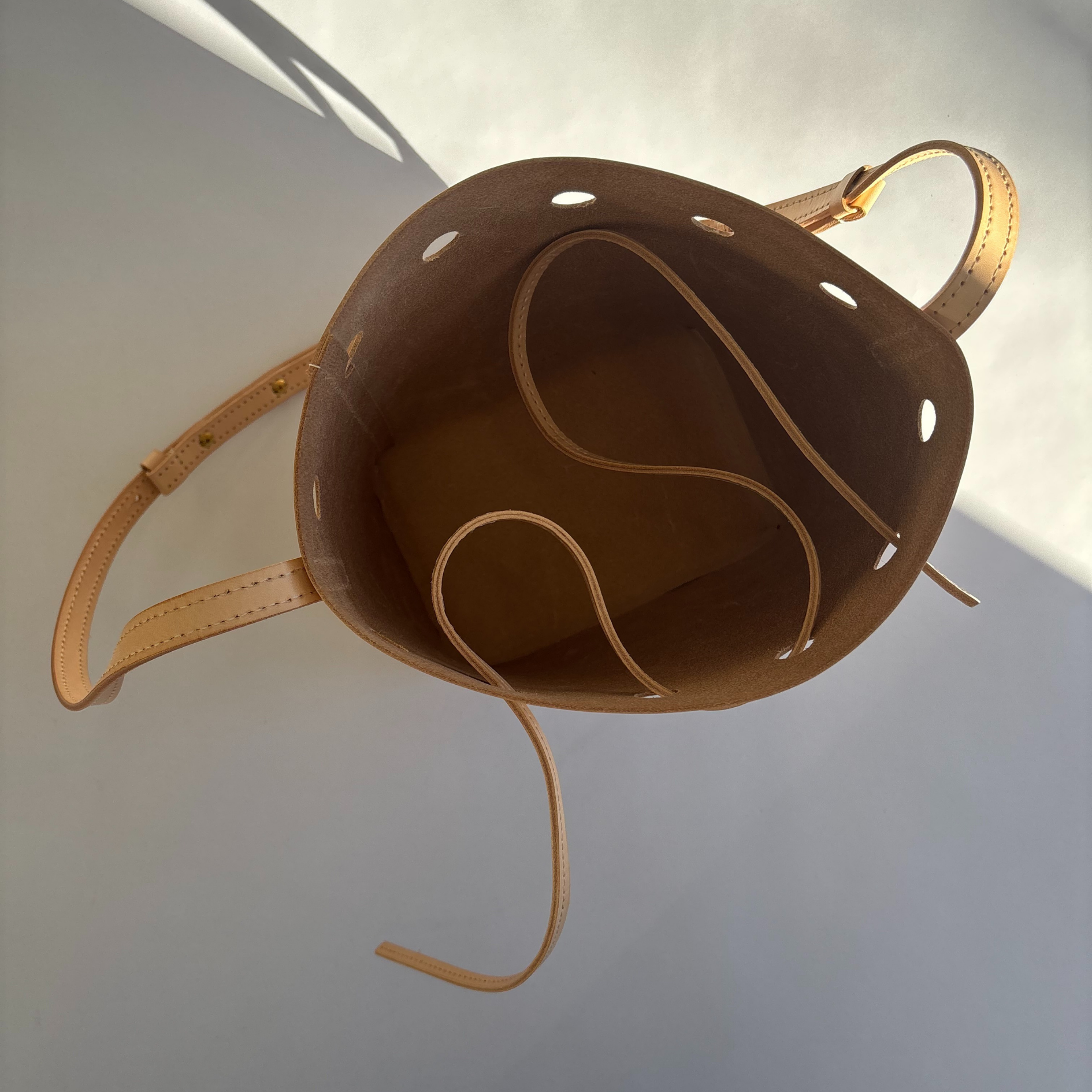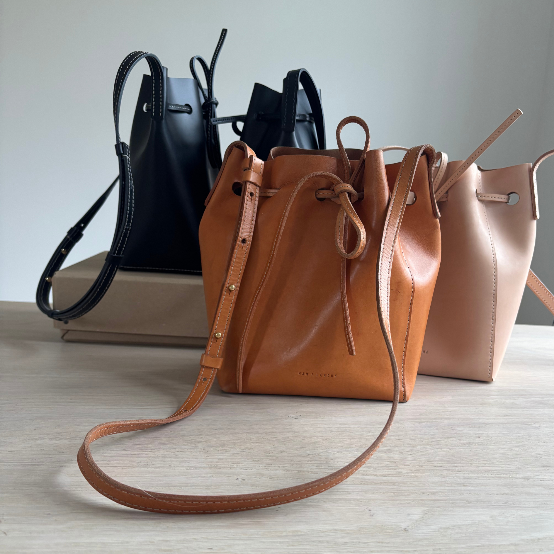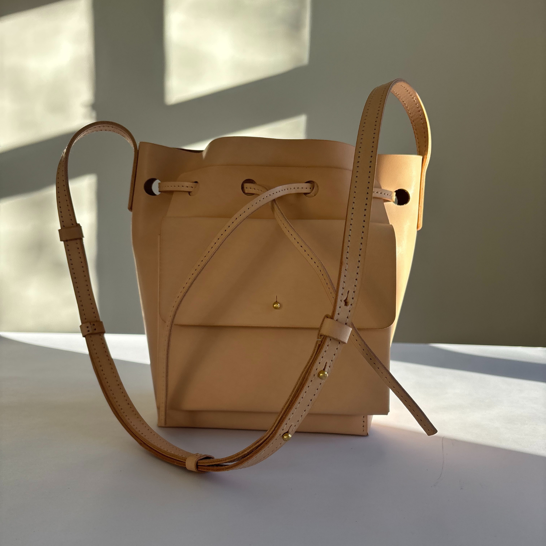 Inspired by our everyday shopper, this bucket bag offers a compact silhouette with surprising room for your essentials. Add all the pockets you want - read futher down. The drawstring closure can be tightened manually, and naturally secures itself when worn cross‑body. Over time, the leather softens and develops a beautifully rounded shape unique to your use.